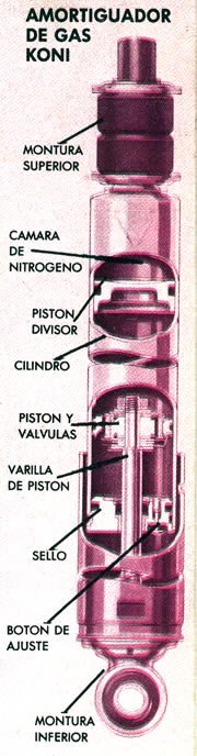 Casi simultáneamente, KONI (Países Bajos) introdujo en 1945 el primer amortiguador telescópico hidráulico ajustable del mundo. Permitía modificar externamente la fuerza (generalmente rebote), revolucionando la capacidad de “sintonizar” (*tune*) la suspensión para diferentes condiciones o para competición.